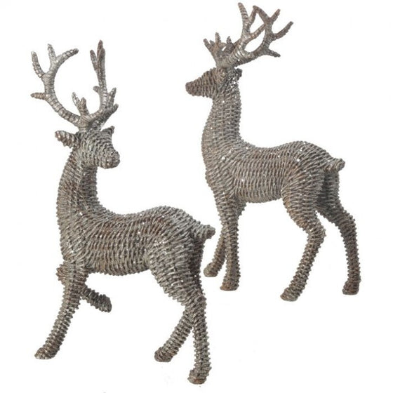 18" Glitter Rattan Standing Deers Assorted Set of 2