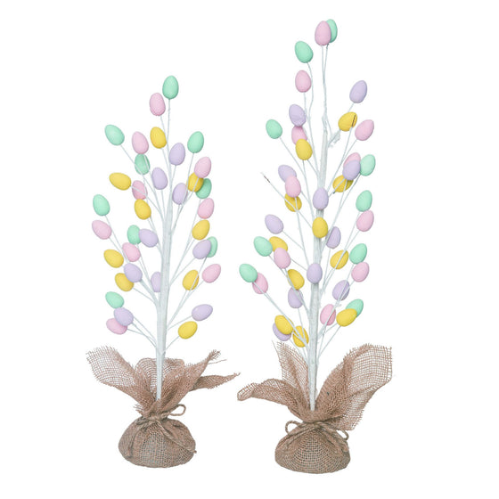 Juego de 2 árboles con ramitas de huevos en colores pastel de 30"