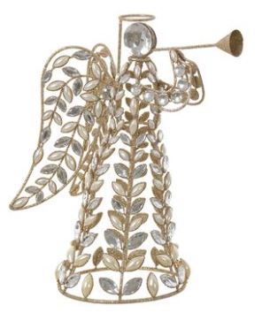 12" Gold Pearl Rhinestone Angel With Trumpet