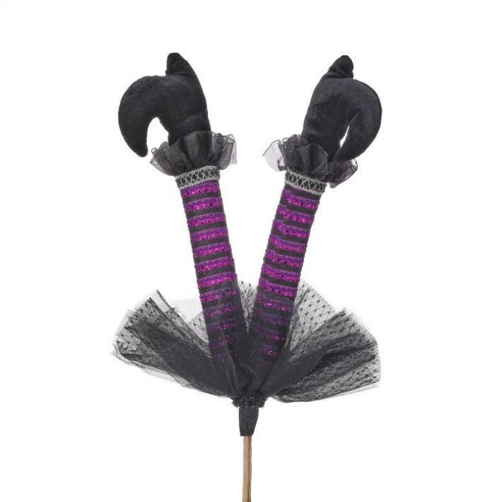18" Purple & Black Striped Witch Legs Pick Set Of 2