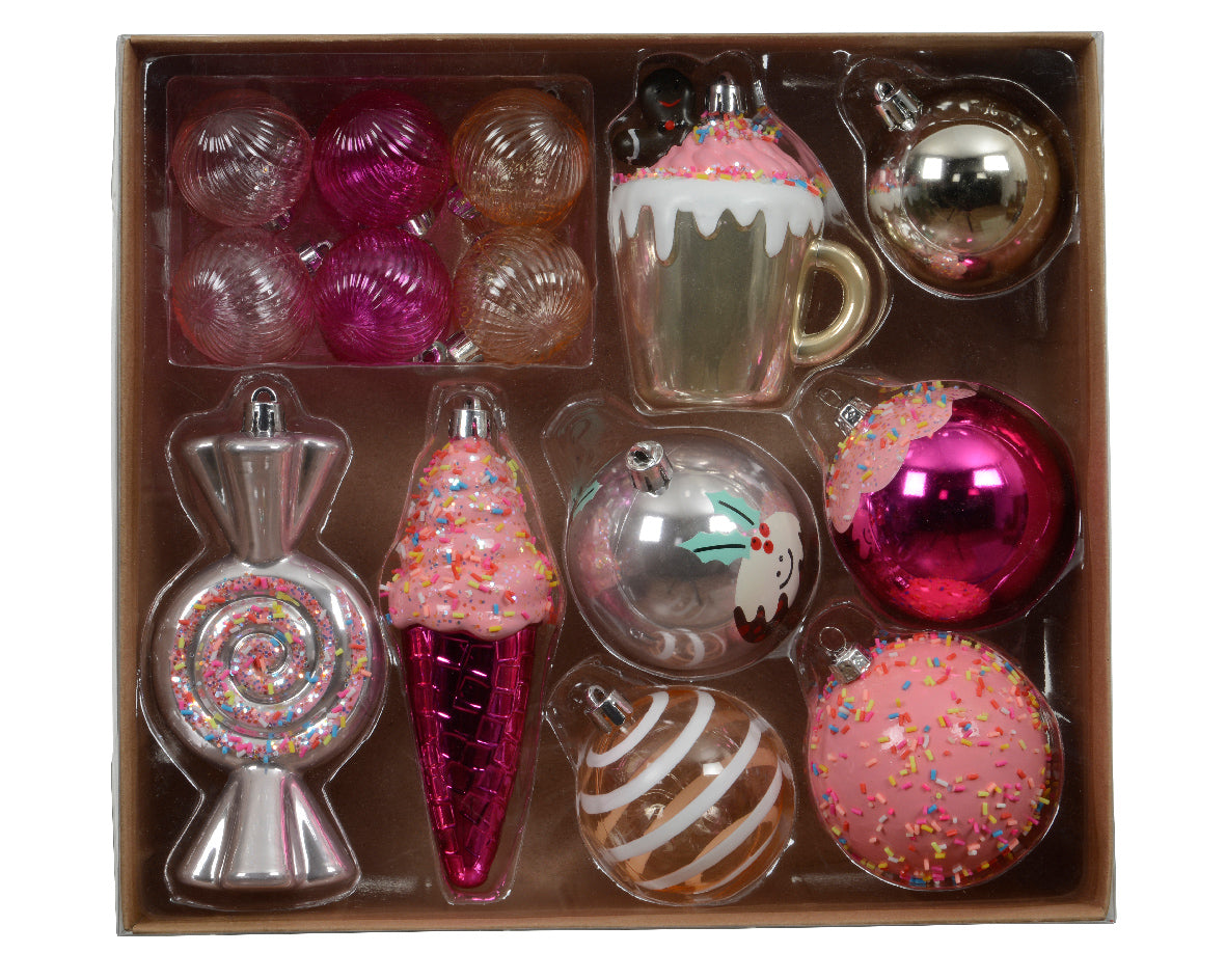 2"- 5" Pink & Gold Shatterproof Candy Ornaments Assorted Set Of 20