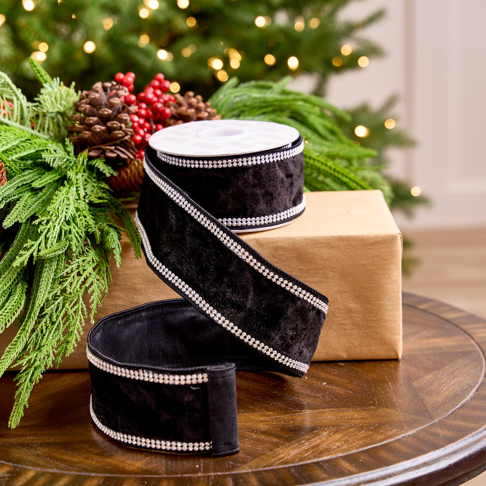 Cinta decorativa de terciopelo negro Swarovski de 2,5" x 5 yardas