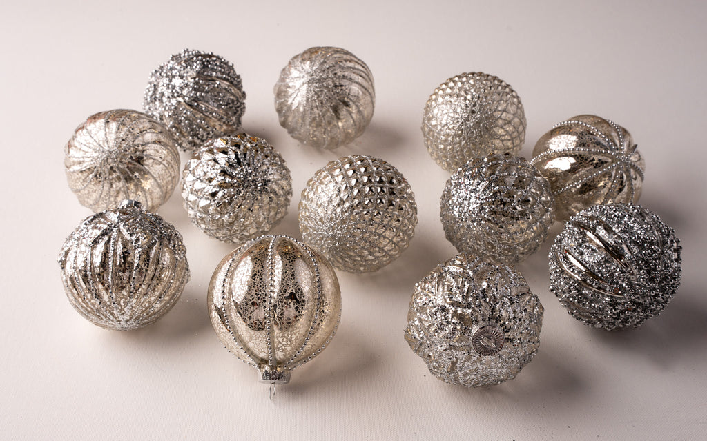 Juego de 12 bolas surtidas de peltre de vidrio de 3"