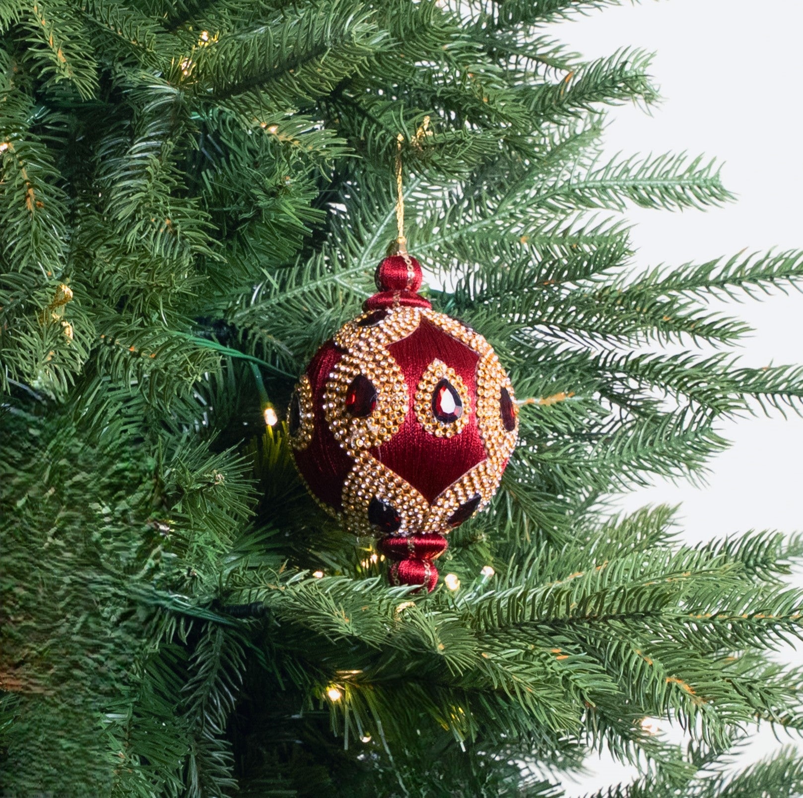 4" Burgundy Jeweled Ball Ornament Set Of 6