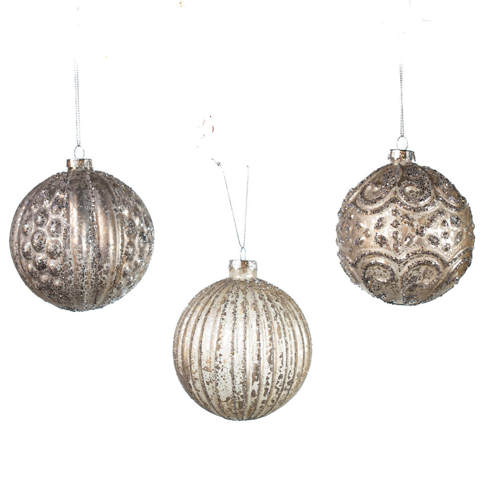 Juego de 12 adornos surtidos con purpurina plateada de 4"
