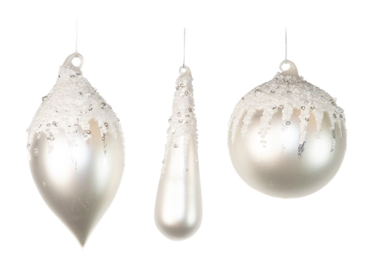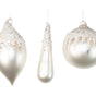 4" White Matte & Glitter Ornament Assorted Set Of 12