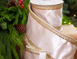 4" X 5YD Ivory Velvet Beaded Trim Ribbon