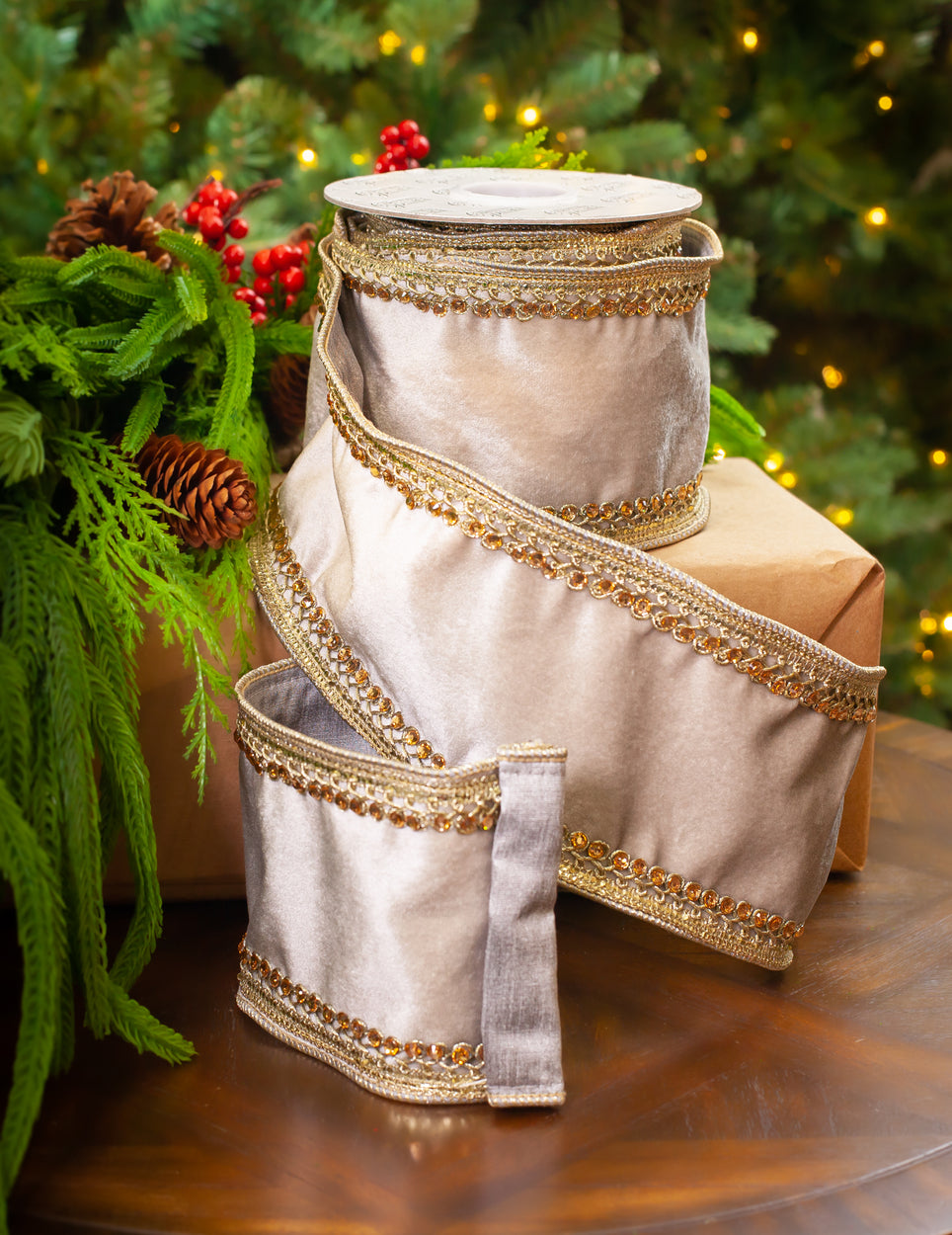 4" X 5YD Platinum Velvet Beaded Trim Ribbon