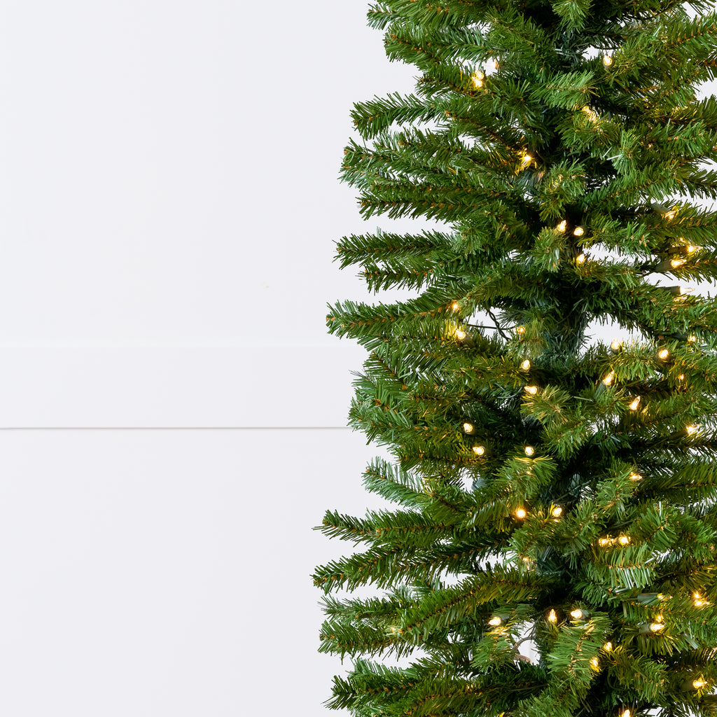 Transform your home into a winter wonderland with our pencil Christmas tree with lights. Each tree is beautifully pre-lit. You won’t have to worry about putting on the lights every year. The best part? You can trade this task for quality moments with the people who matter most. Warmth and joy are the vibes our twinkling lights give off, perfect for filling your home with happy memories. With clear lights, you can decorate your tree however you like to create a personalized Christmas atmosphere.