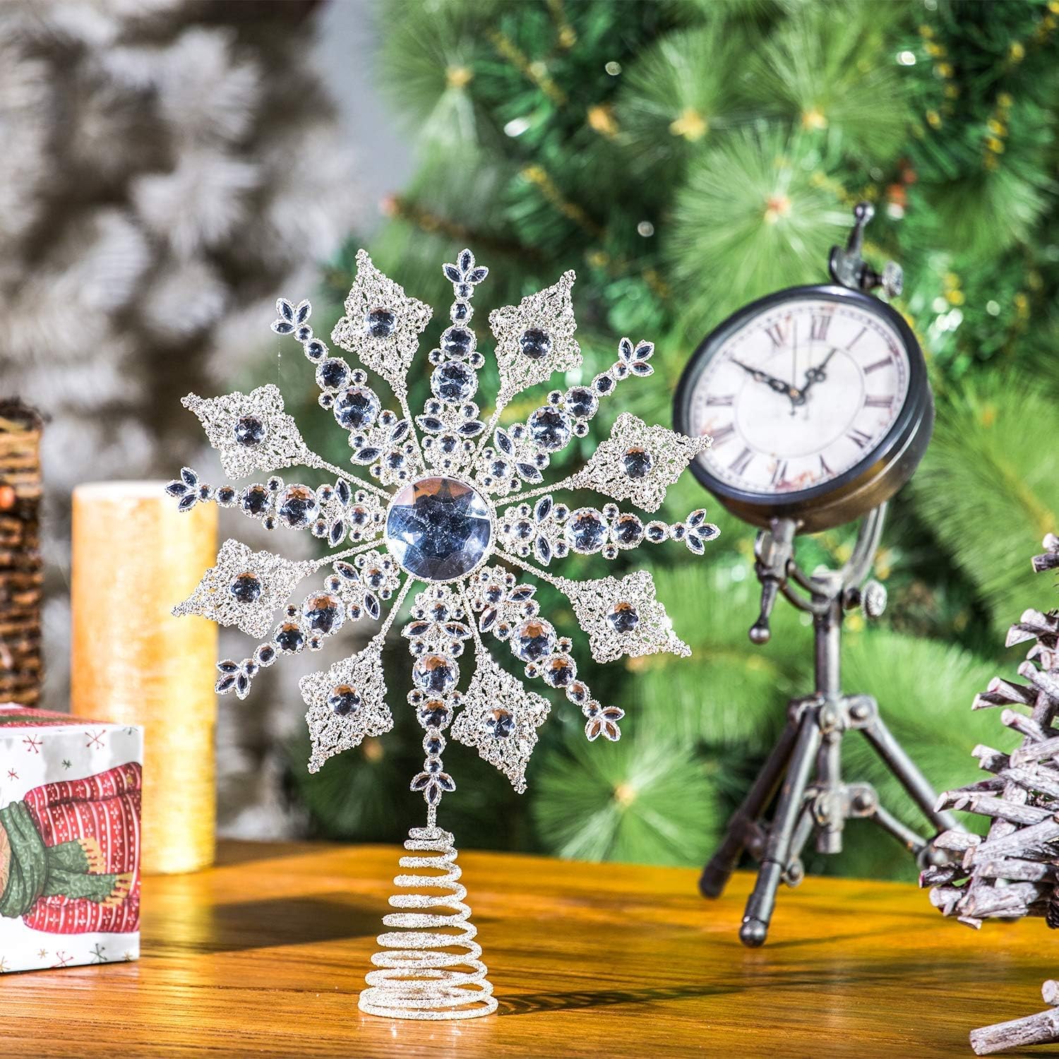 14.5" Silver Glitter Jeweled Snowflake Tree Topper