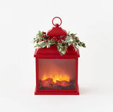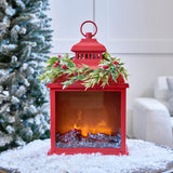 15" Red Fire Light Lantern With Berry Wreath Battery Operated