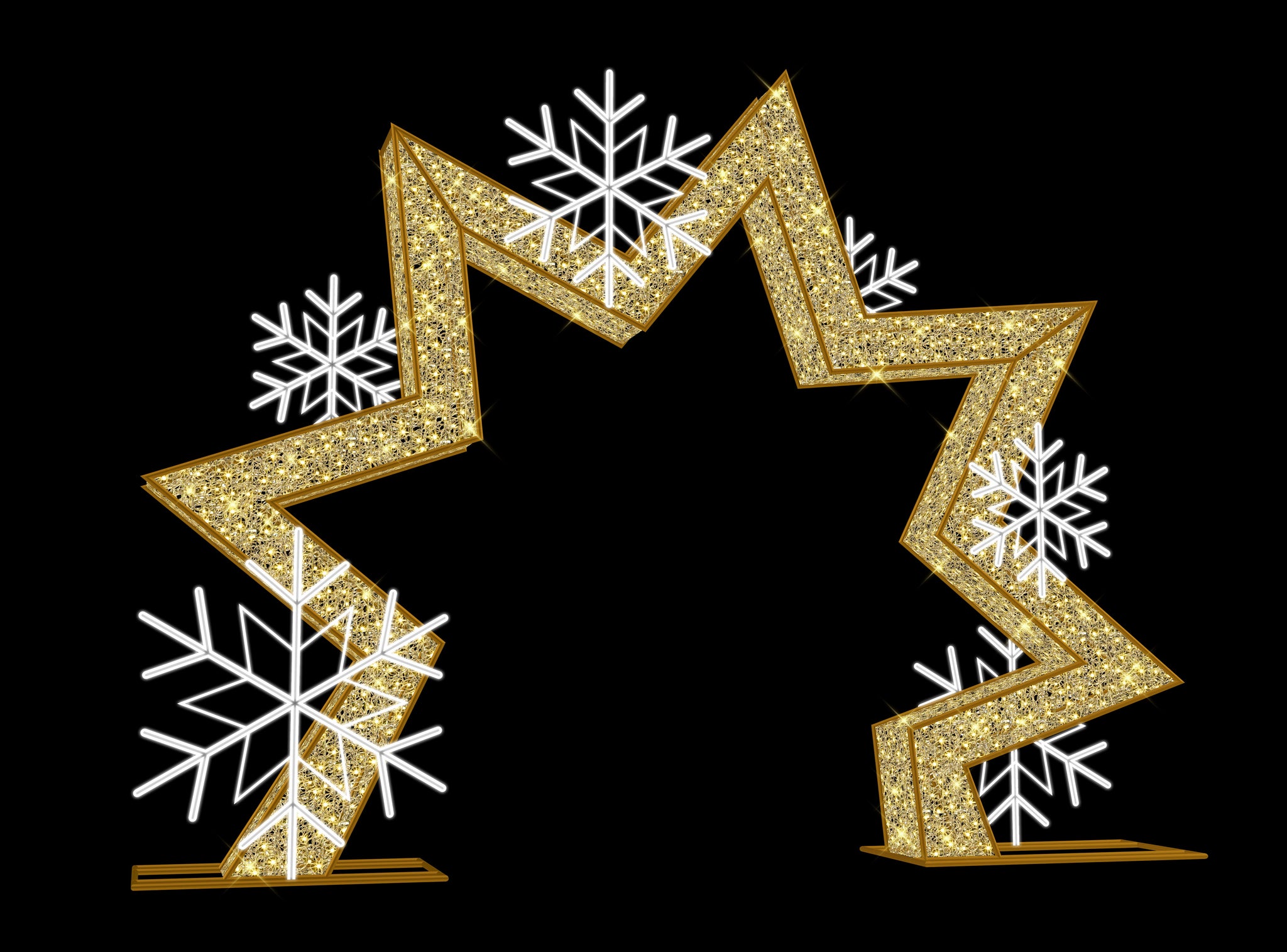 Design: Geometric star arch with illuminated snowflake accents