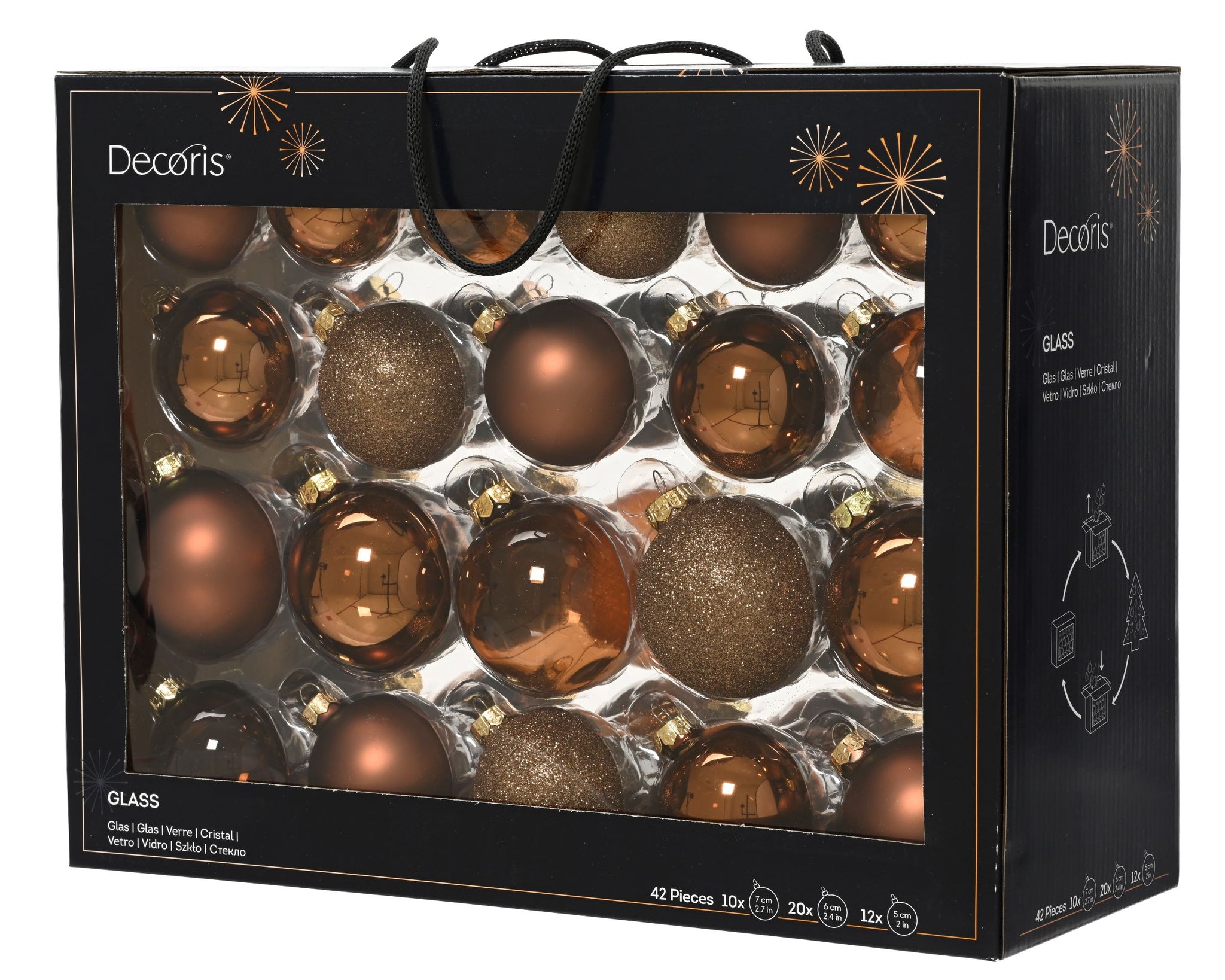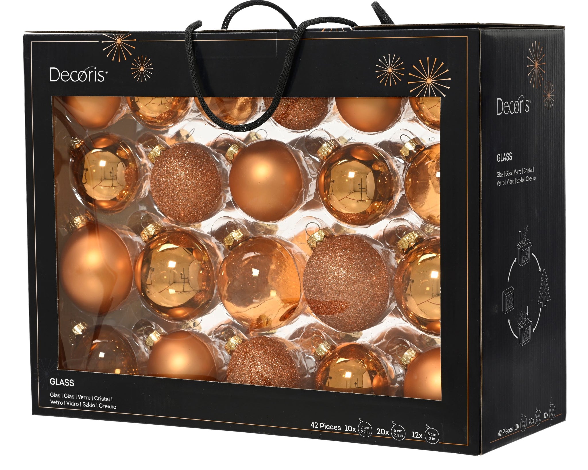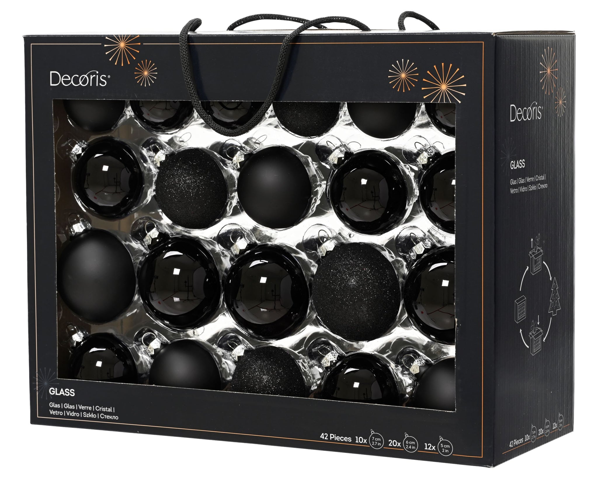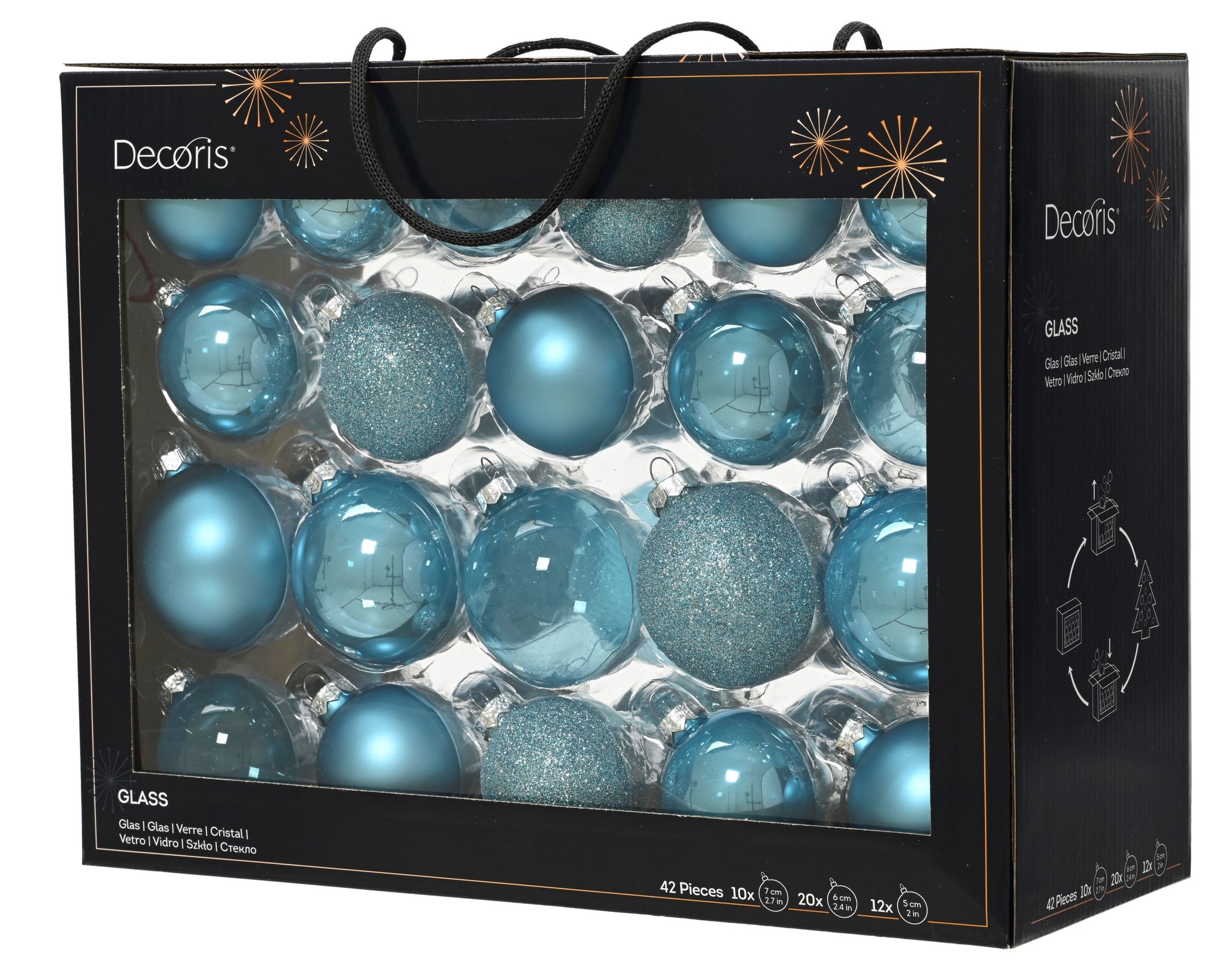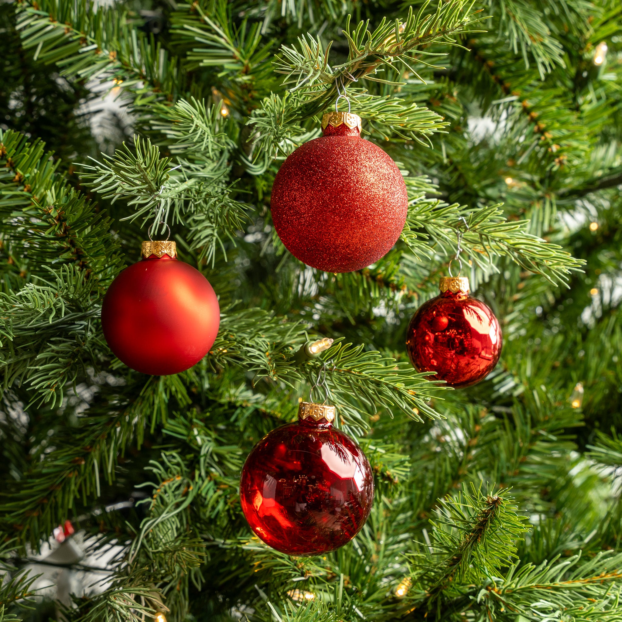 Elevate your holiday display with this exquisite 42-piece set of glass ball ornaments, thoughtfully designed in a mix of sizes and finishes to bring dimension and elegance to any décor. Featuring a beautiful blend of shiny, matte, and glittered styles, each ornament adds its own touch of sparkle, softness, or shimmer. Available in a wide range of colors, this versatile collection makes it easy to find the perfect match for your seasonal theme. Whether classic, modern, or whimsical, these ornaments add magic, depth, and festive brilliance to your home