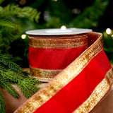 2.5" X 5YD Red Velvet Ribbon With Gold Edge Trim