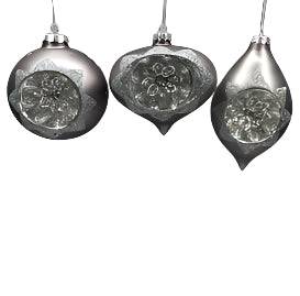 3"- 5" Silver Snowflake Ornament Assorted Set Of 12