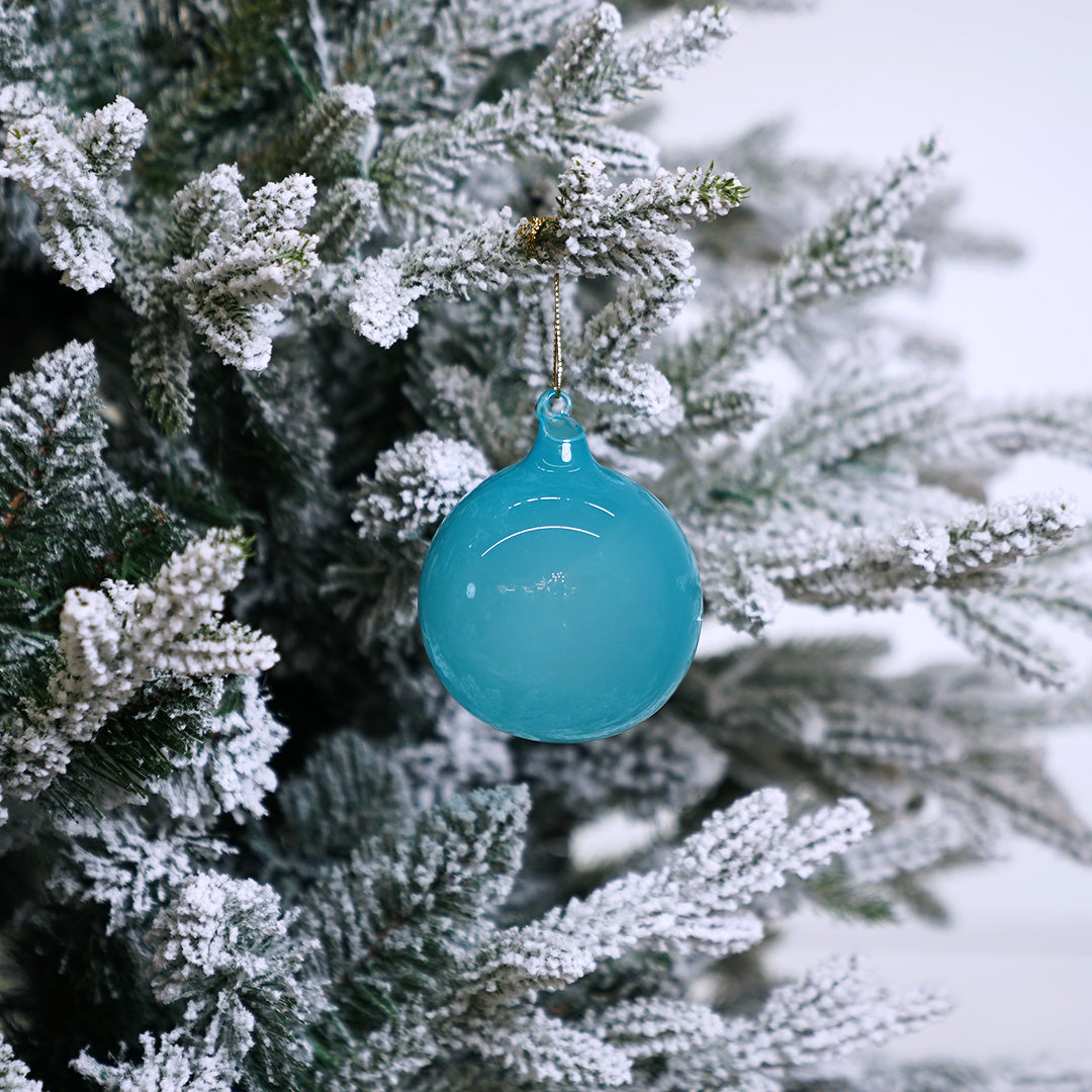 3" Turquoise Bubblegum Glass Ornament Box Of 6