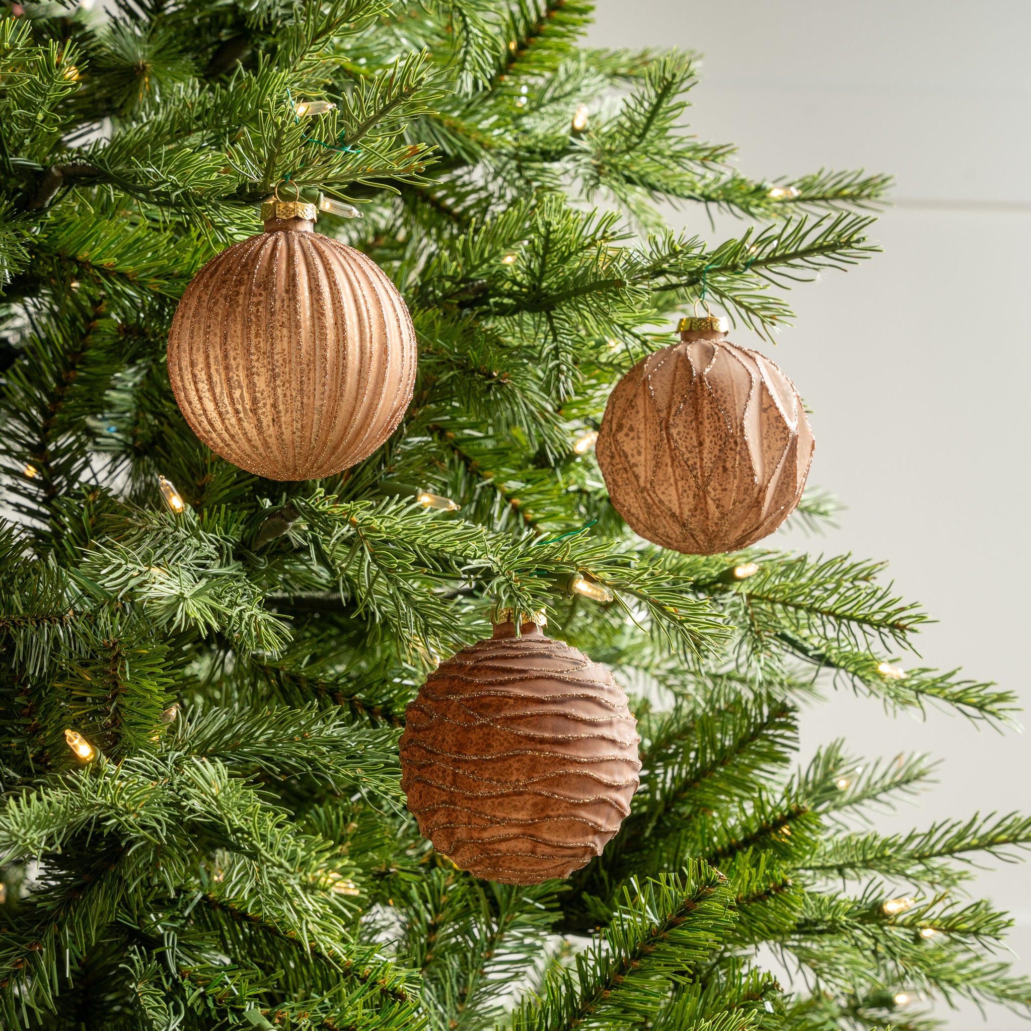 4" Copper Glitter Glass Ball Ornament Assorted Set Of 12