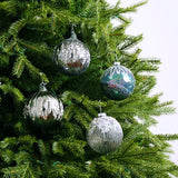4" Grey & Silver Decorative Ball Ornament Assorted Set Of 12