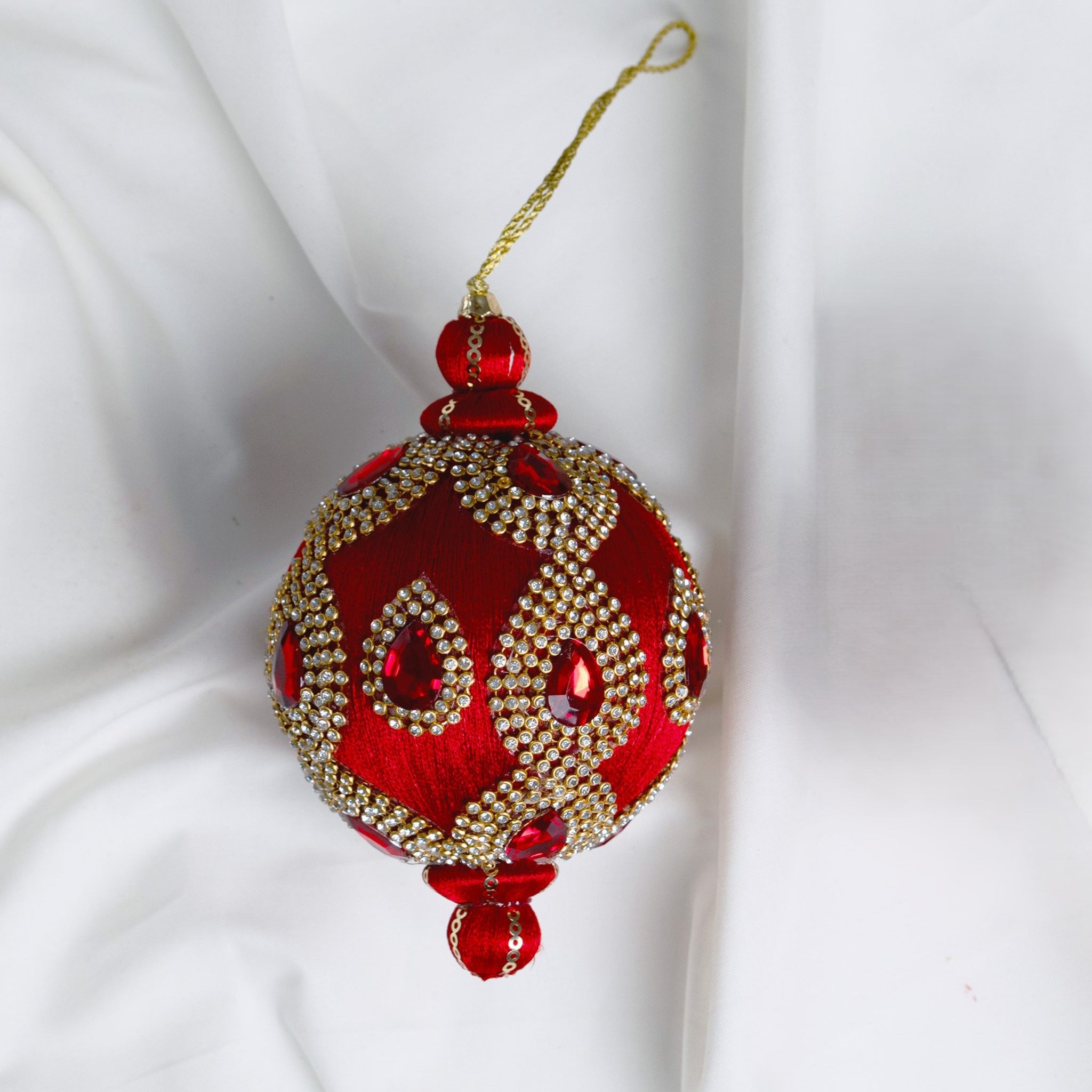 4" Red Jeweled Ball Ornament Set Of 6