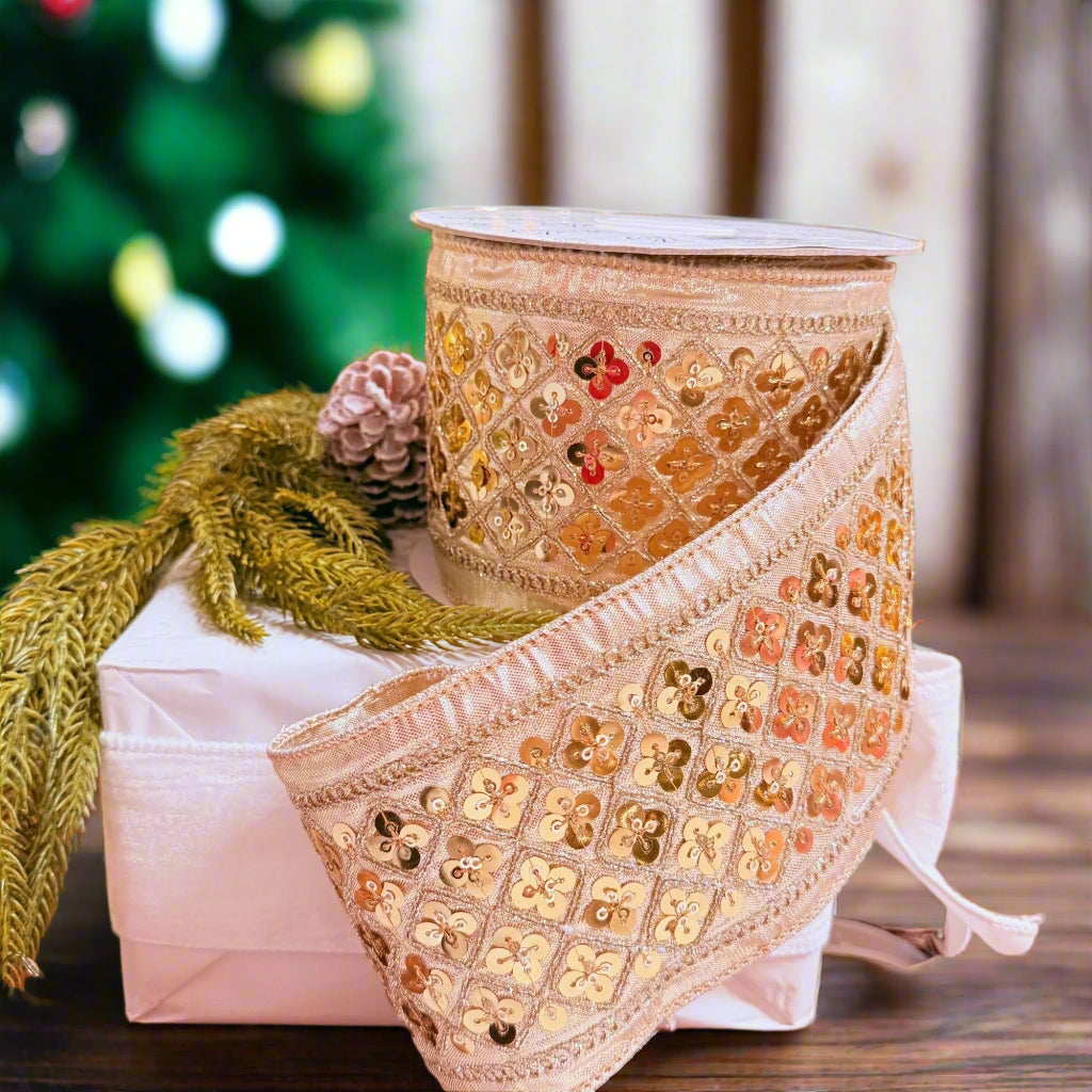4" X 10YD Gold Sequin Ribbon