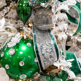 4" X 5YD Emerald Velvet Ribbon Beaded In Silver