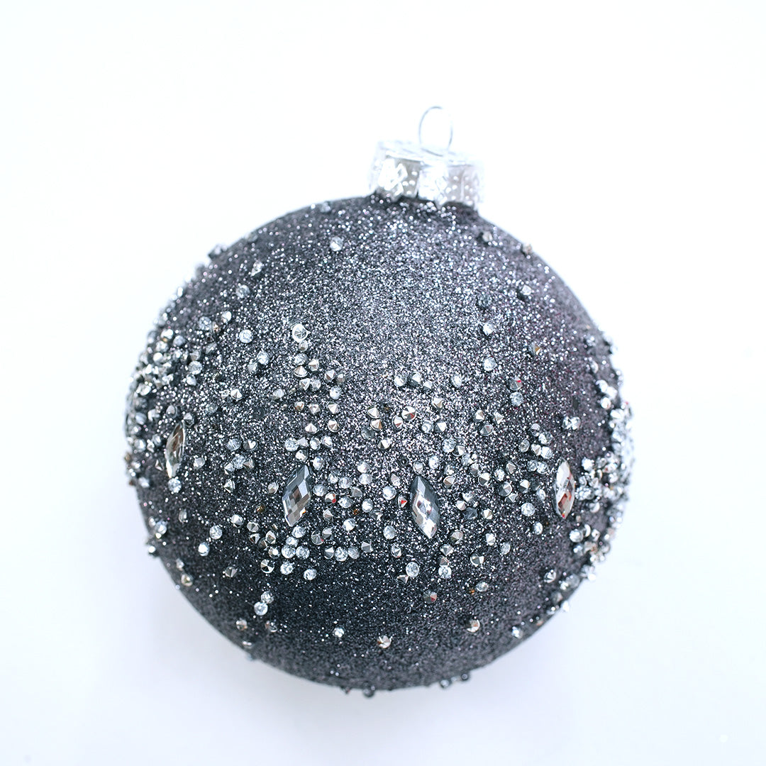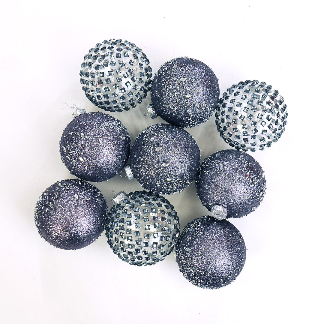 5" Grey Jewel Glass Ball Ornament Assorted Set Of 9
