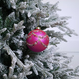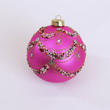 5" Matte Fuchsia Beaded Swag Ball Ornament
