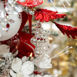 6" Red, White, & Silver Glass Finial Set Of 12