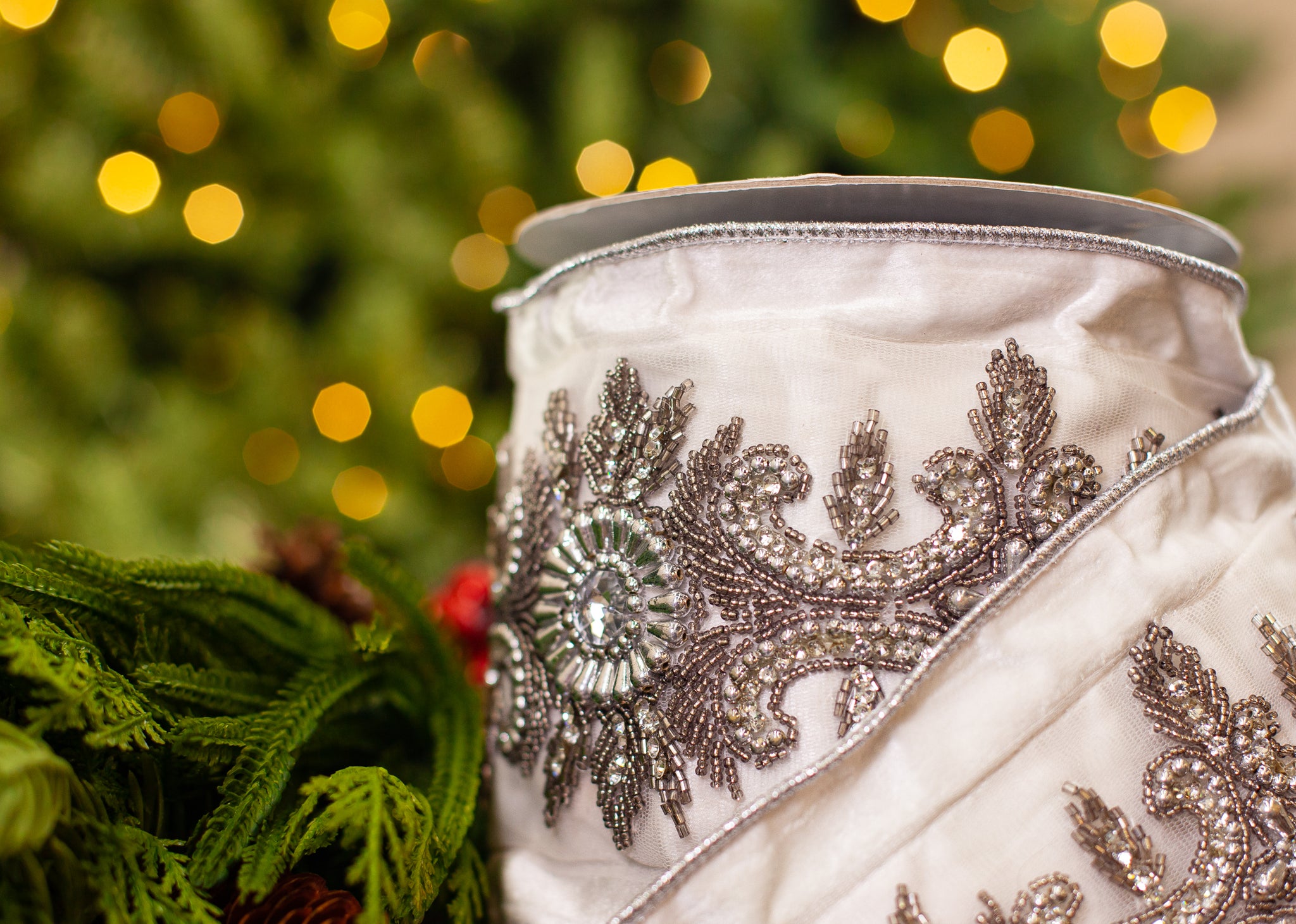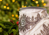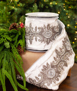 6" X 5YD White Velvet Ribbon With Jewel Embroidery