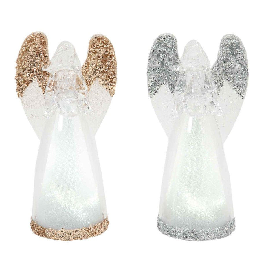 7" Lighted Silver & Gold Angel Assorted Set Of 2