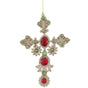 7" Red & Green Rhinestone Cross Ornament Set Of 6