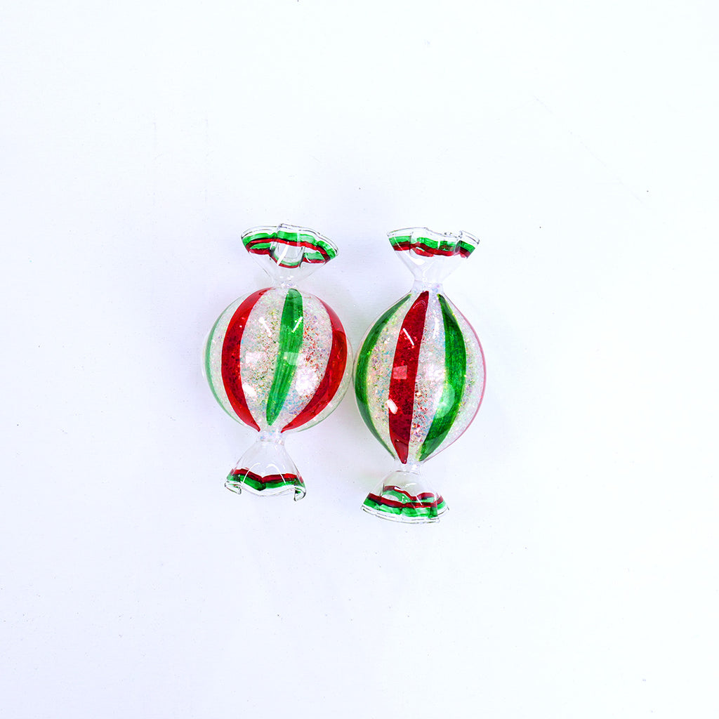 8" Red & Green Candy Lighted Ornament Assorted Set Of 2